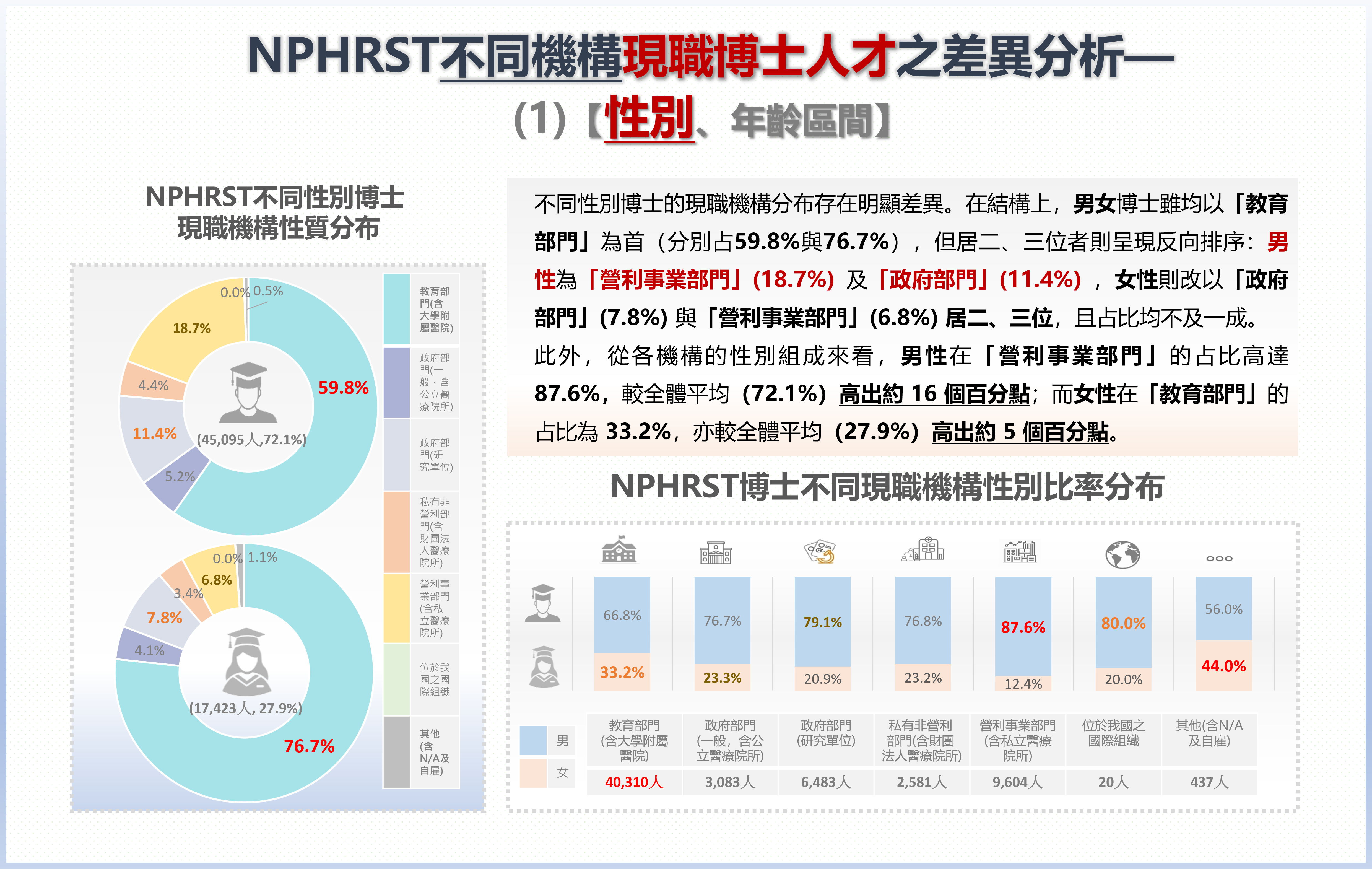 NPHRST不同機構現職博士人才之差異分析—(1)【性別、年齡區間】